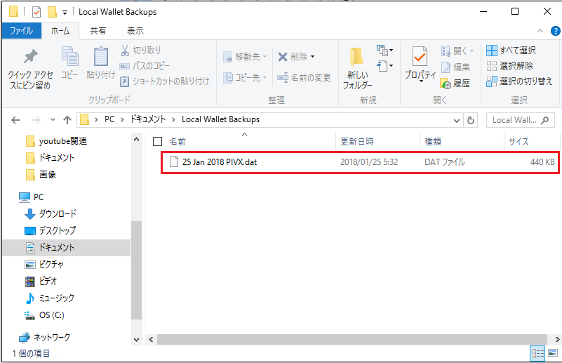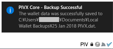 バックアップフォルダー内ですぐにバックアップの日付が分かるように上記のようなファイル名を(25 Jan 2018 PIVX)がいいかもしれませんね。