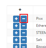 Bittrexの【Wallets】タブから【ACCOUNT BALANCES】を確認すると現在自分が保有している通貨が表示されています。ビット建てで保有価値の大きい通過順に並んでいます。ちなみに当時(2018年1月)のビット建てポートフォリオは、Pivx、Ethereum、STEEM、Salt、Bitcoinでした。では、取引所のBittrexからPivx通過をPIVXウォレットへ送金します。Pivx横に+-表記があるのでマイナス(-)の方をクリックして出金手続きをします。