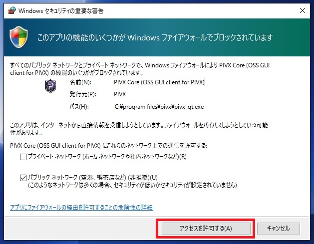 もしもWindows ファイアウォールでブロックされると下記のポップアップが表示される。↓