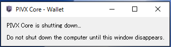 『PIVX』ウォレットのシャットダウン中に一瞬表示されるメッセージ